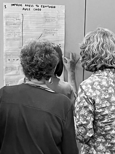 A key person or team was appointed to drive each area which had been brainstormed. Strategies were collected by that person / team and they were then responsible for considering the strategies, and creating an action plan implementing the strategy that best positioned them to meet the goal. All key persons/teams would then meet again one month after the planning day to review progress. Attendees were told this follow-up plan on the day so that they were aware and were offered the opportunity to contribute to those areas they felt connected to.